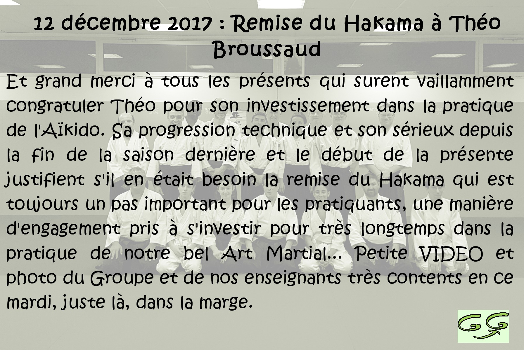 | 171212 - Remise du Hakama à Théo BROUSSAUD... le film | Et grand merci à tous les présents qui surent vaillamment congratuler Théo... Cliquer pour lire la suite. | ![]() |