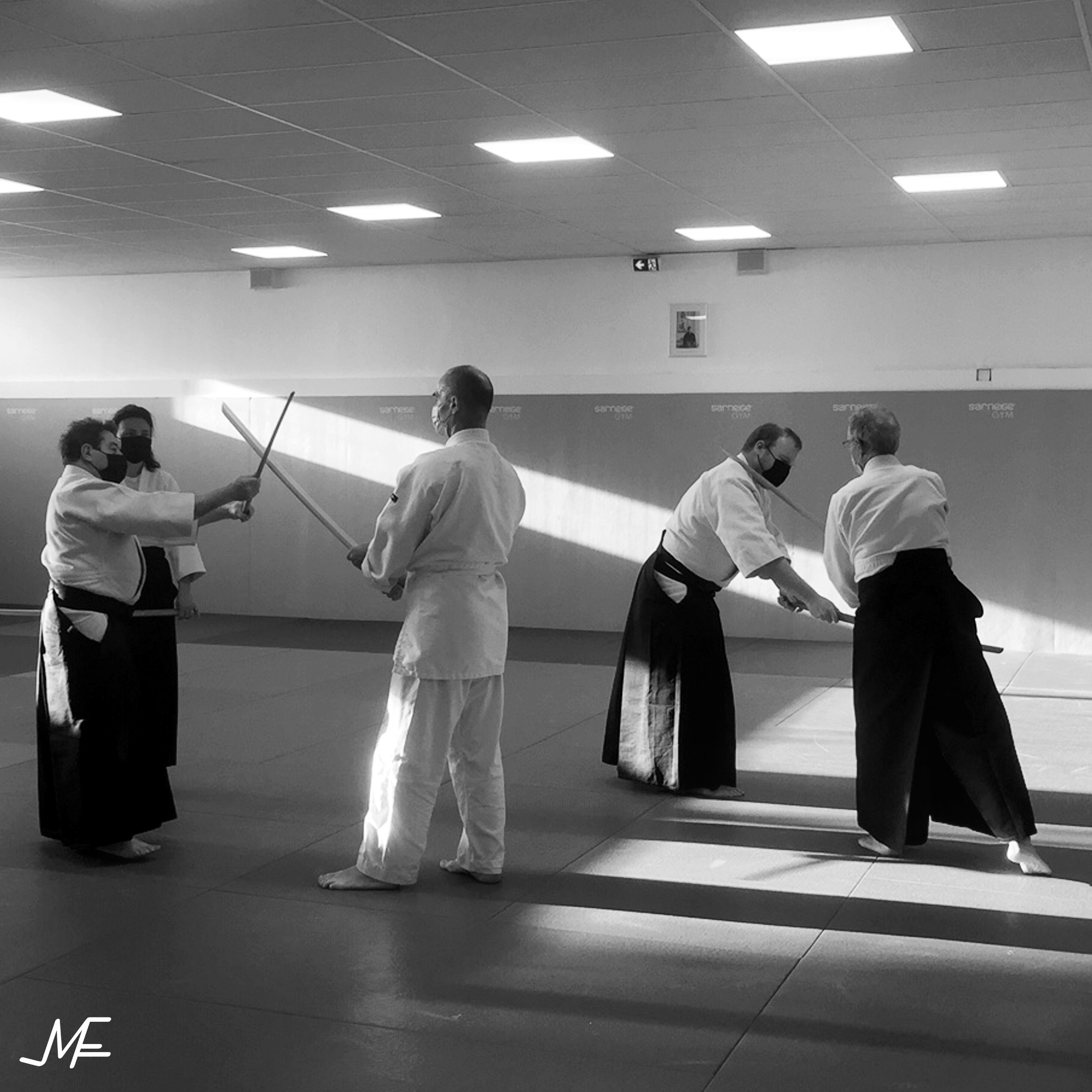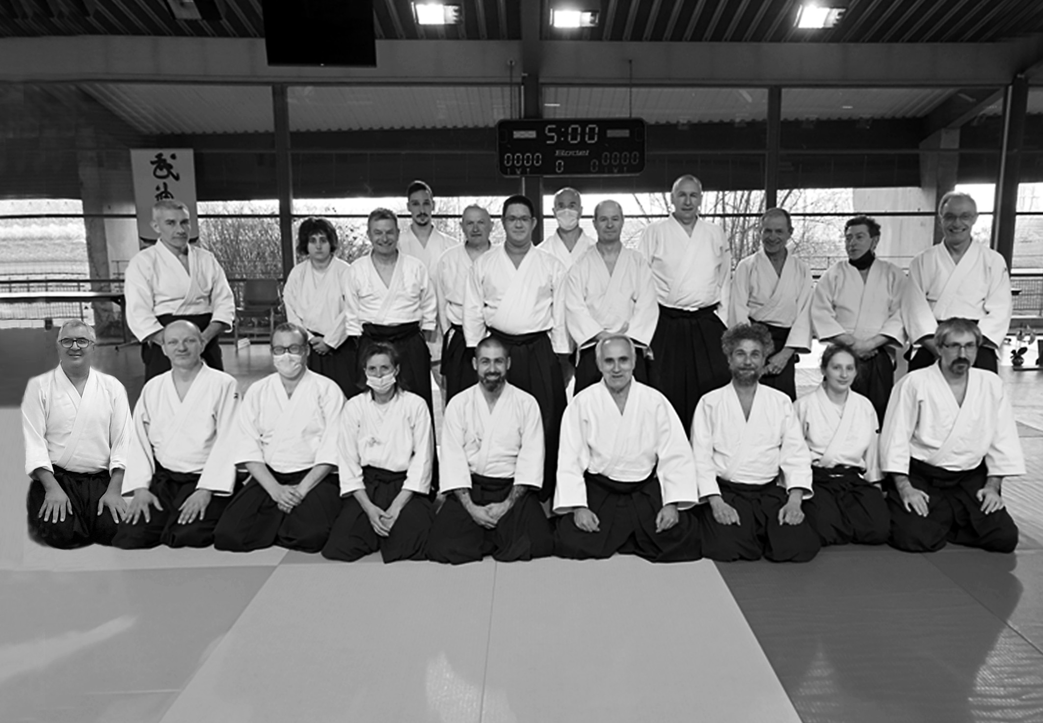Vers un frémissement tangible de reprise dans notre pratique ! A preuve : pour la première fois depuis bien des lustres nous fûmes 14 sur les tatamis du Lalu Marcel ! C'est rassurant et cela nous fait du bien !!! Photos par Pascal Fouilloud et Richard Chambord, montage gg. |