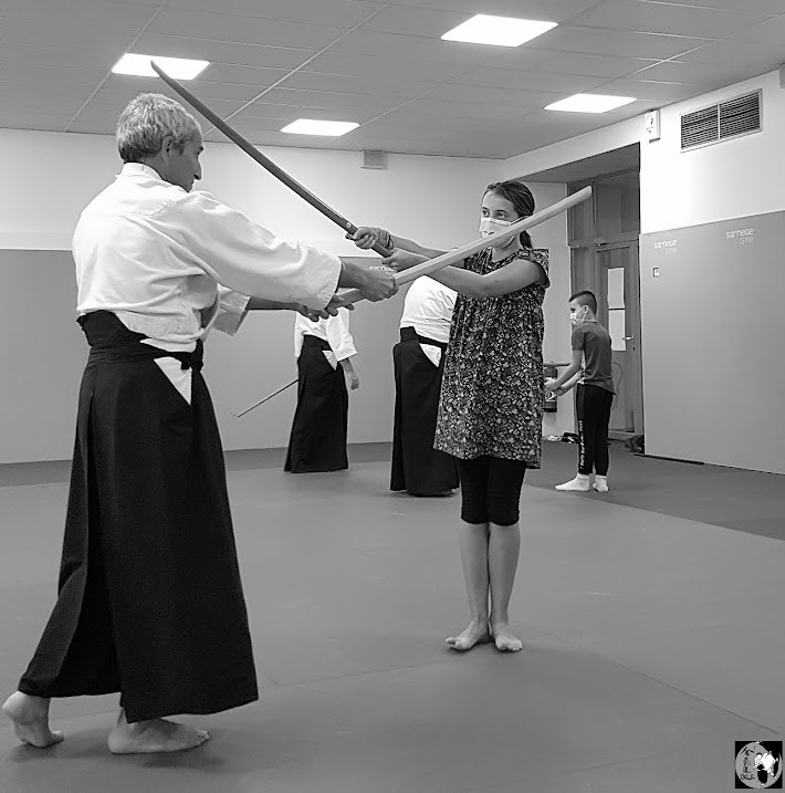 Oui, oui, un clin d'œil très juvénile avec Suzanne et Simon - respectivement la fille et le fils d'Eliette et Jean-Paul également présents sur les tatamis ce matin là et qui donnèrent leur accord pour une publication sur ce site... - au Bokken du cours de samedi. Des photos de Pascal Fouilloud et 2 petits montages de gg. |