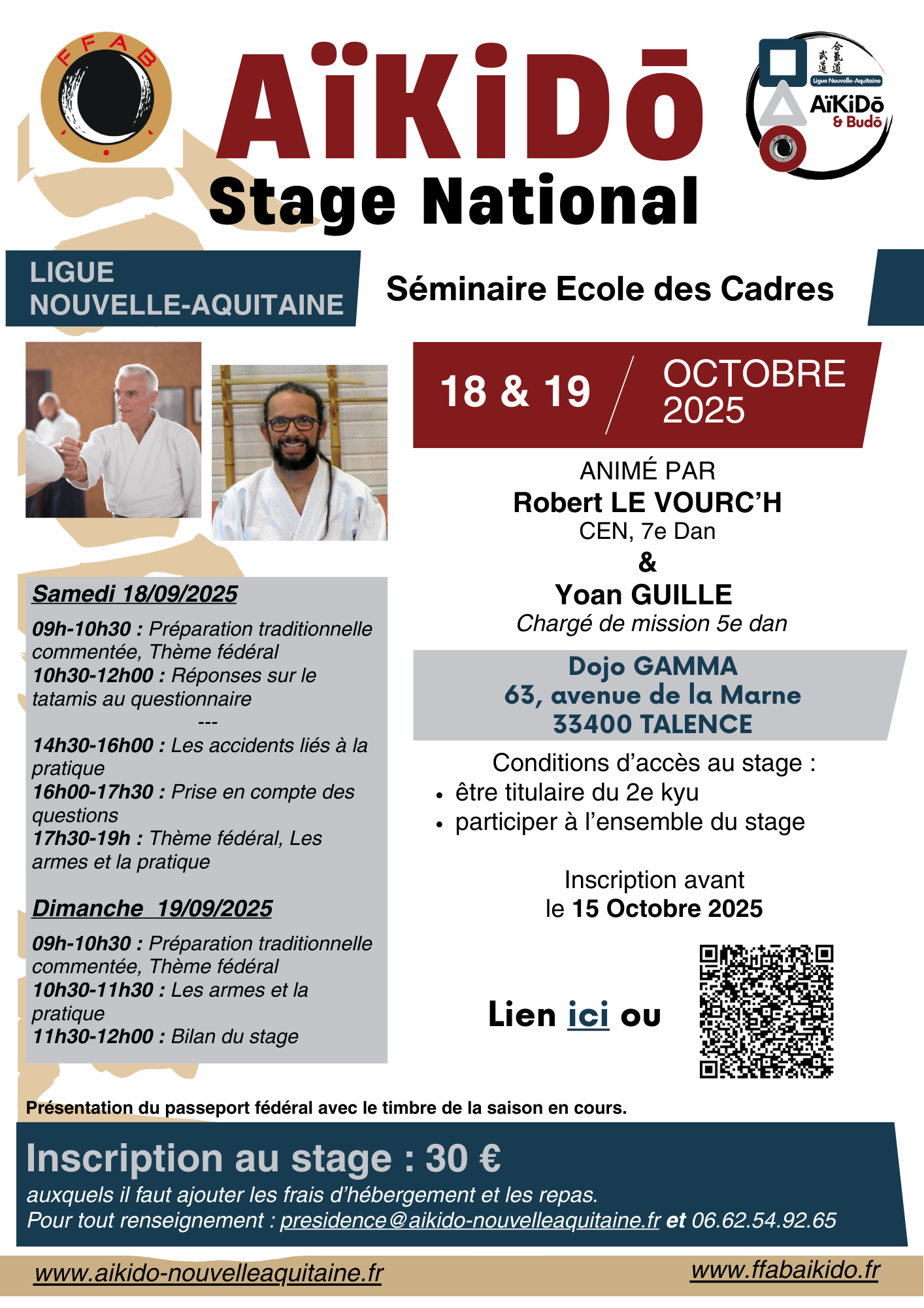 | Samedi 14 et Dimanche 15 | National Prépa 3/4 | Guillaume COLONGES CEN 6 e Dan | NA BORDEAUX | Affiche à venir |
