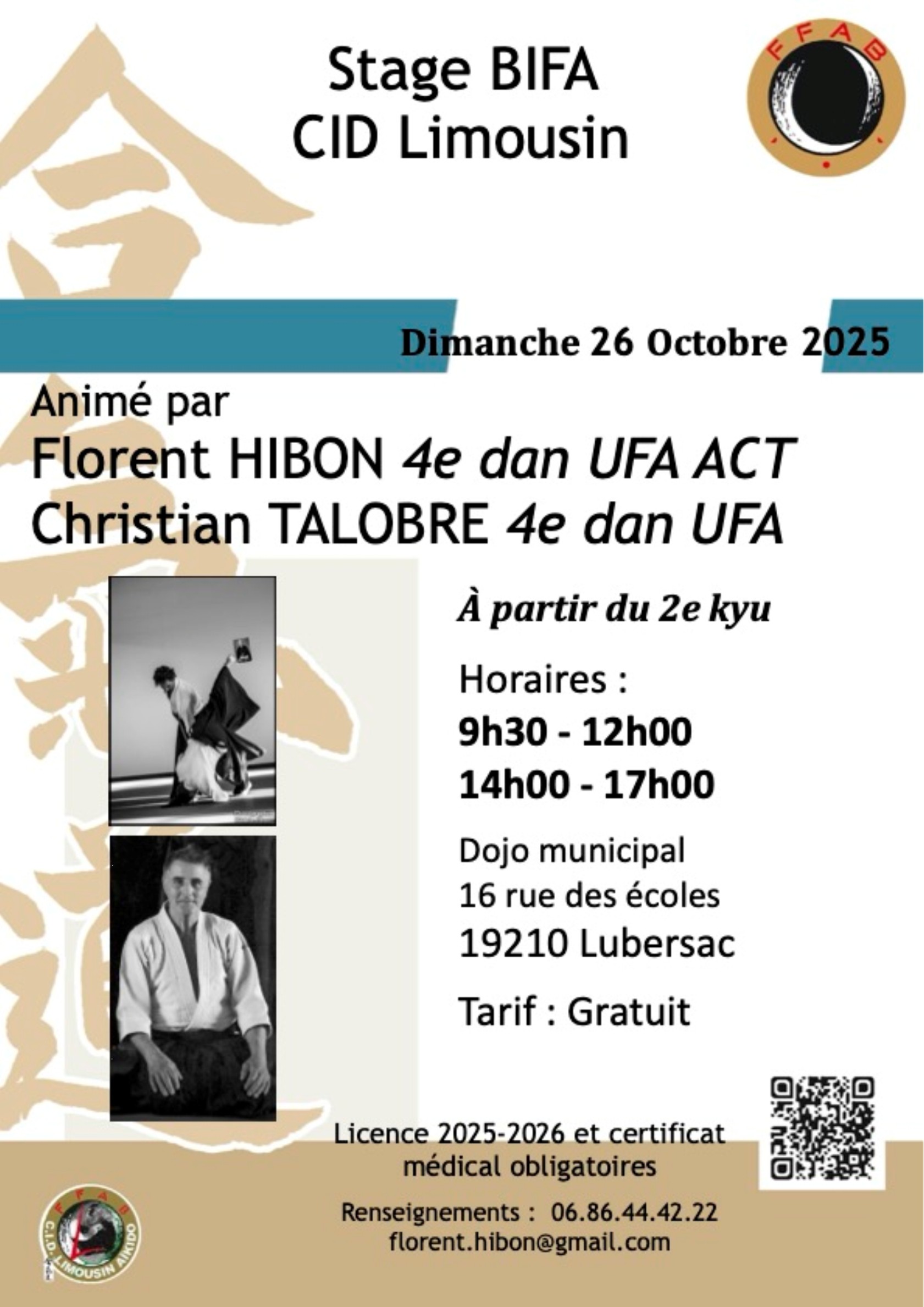 | Dimanche 26 | Stage BIFA - à partir du 2K |