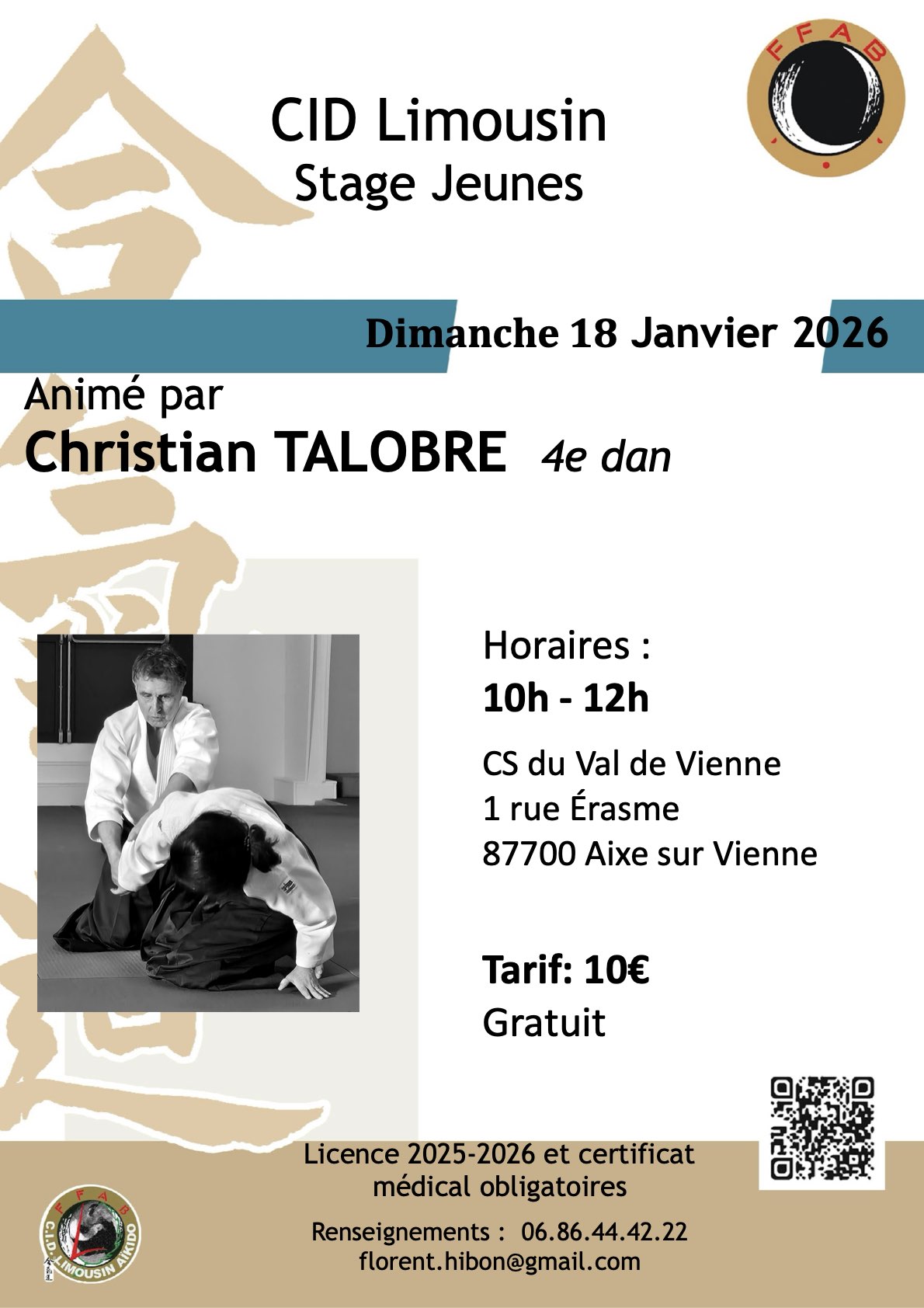 | Samedi 15 | Stage jeunes 1 | Christophe CHUNG 4e Dan | VERNEUIL-sur-VIENNE | Affiche |