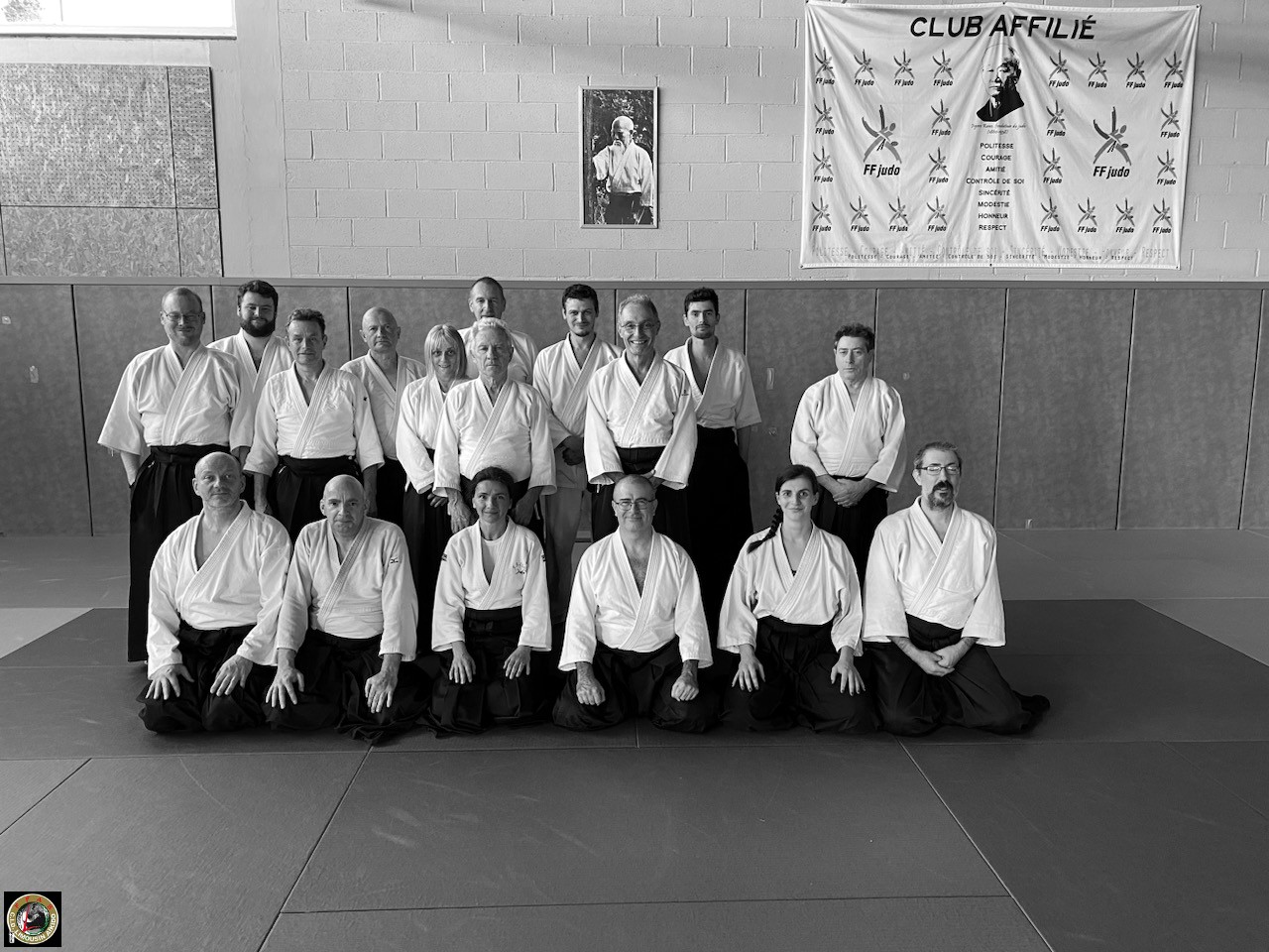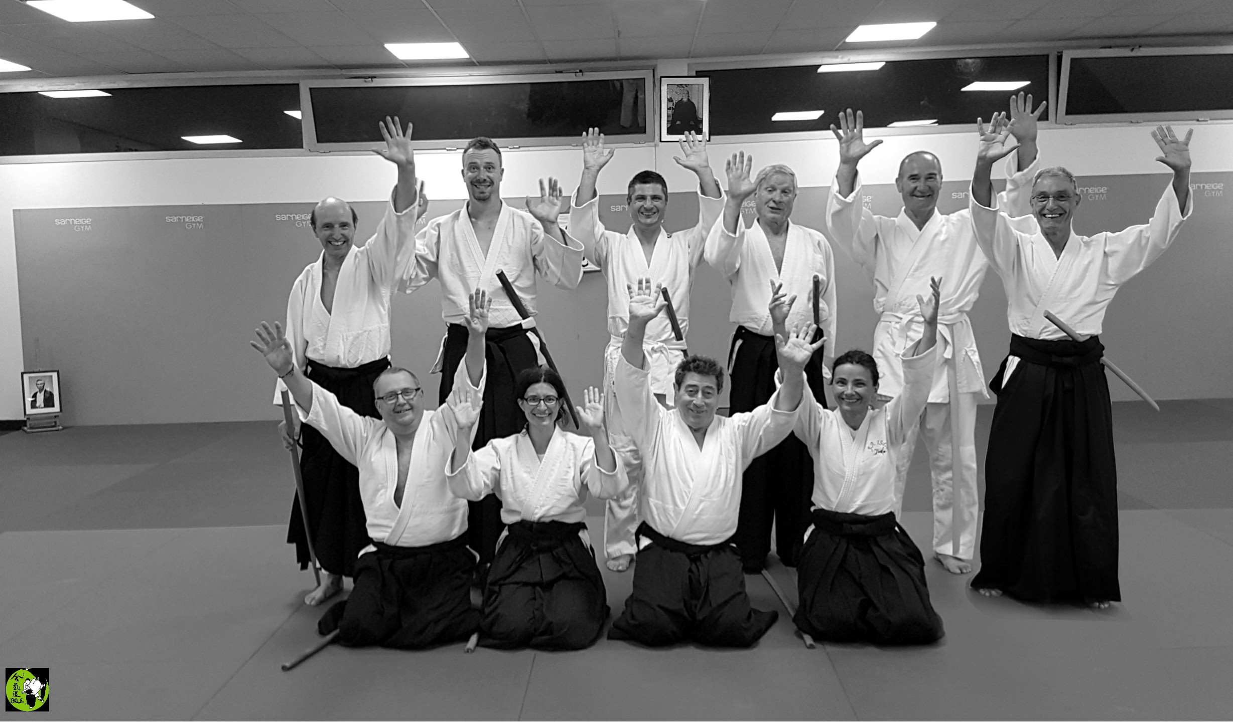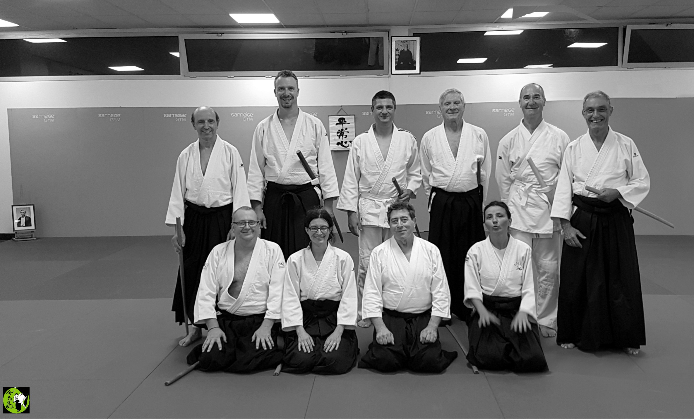 Et comme depuis que le covid est passé par là, dès que nous sommes dix et plus sur les tatamis, nous en profitons pour faire une photo de fin de cours N&B et couleur, bien sûr. |