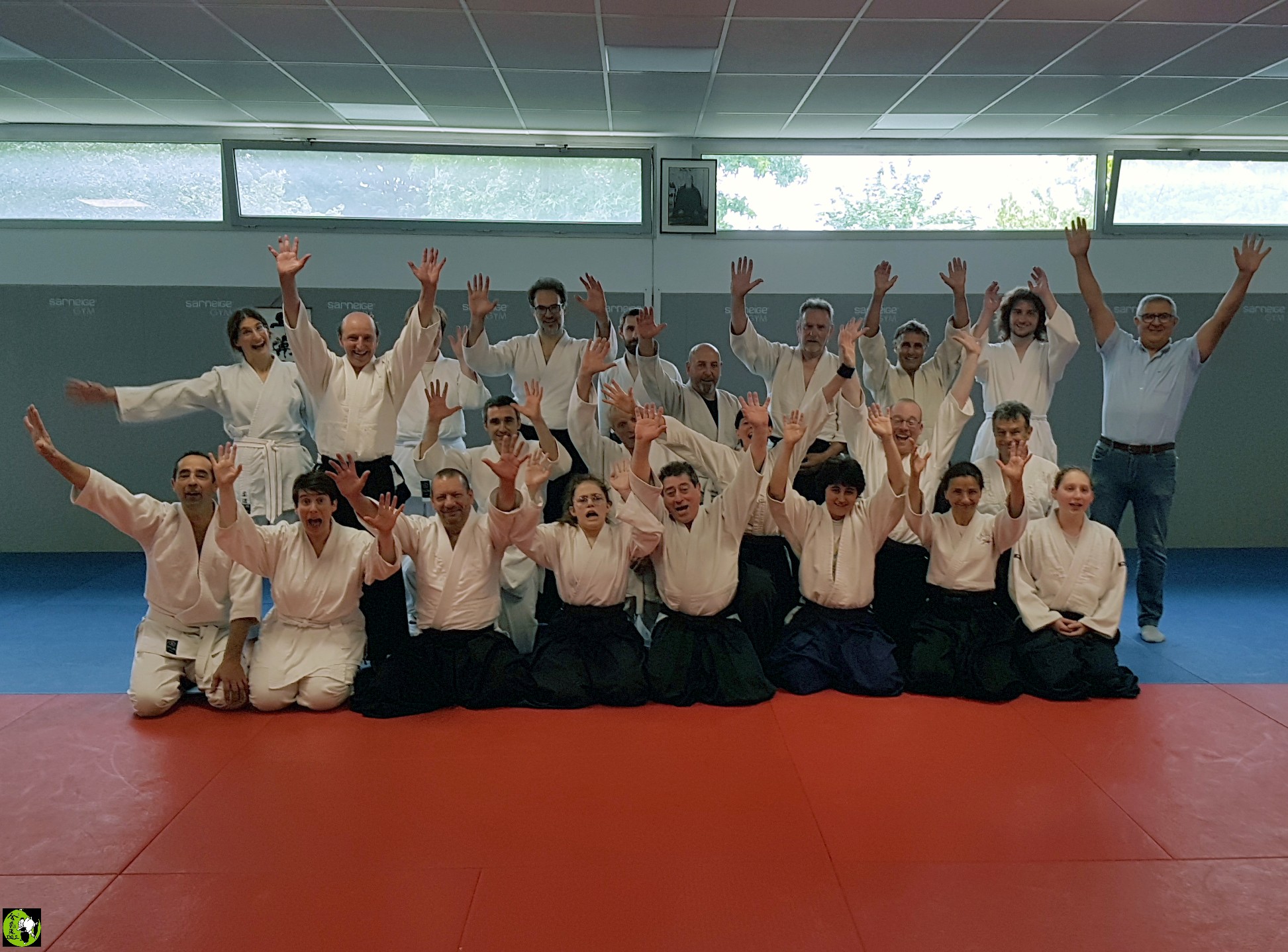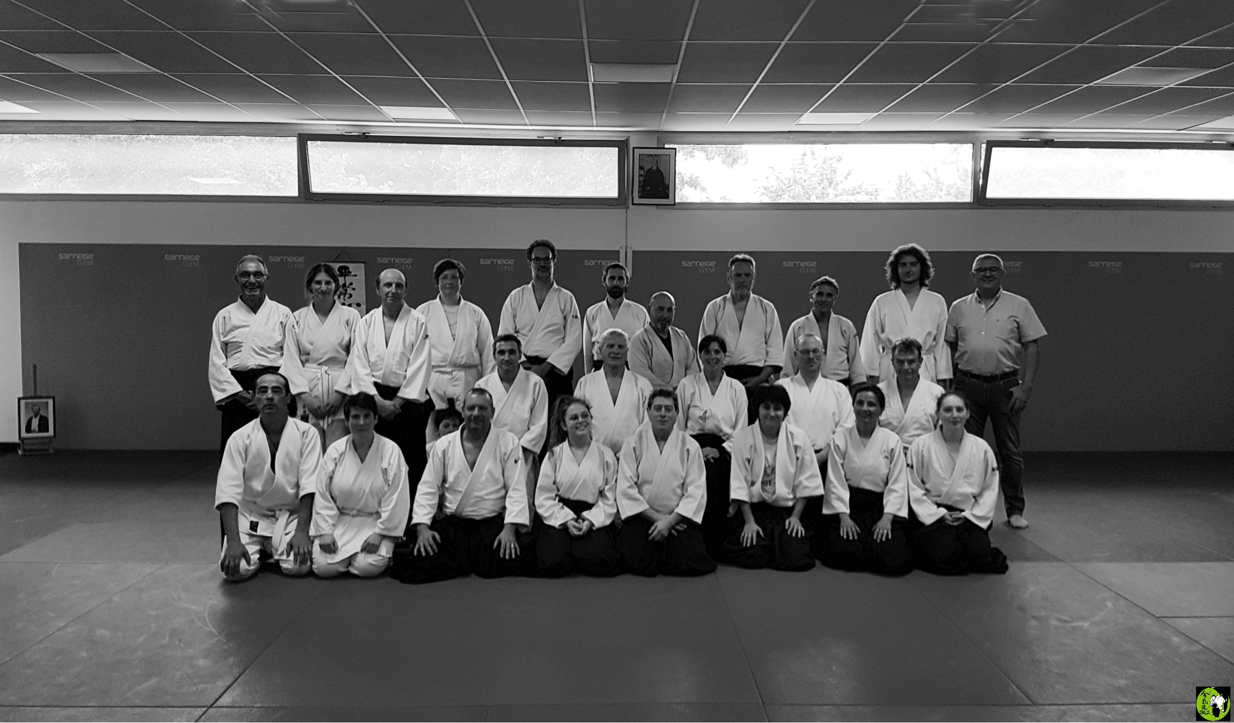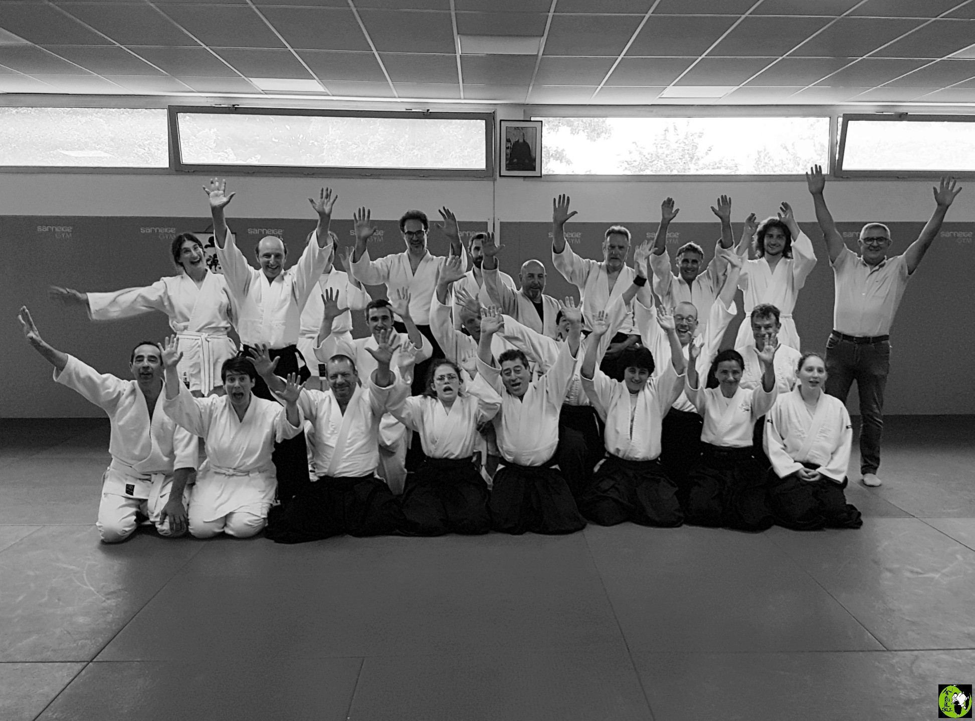 Et comme depuis que le covid est passé par là, dès que nous sommes dix et plus sur les tatamis, nous en profitons pour faire une photo de fin de cours N&B et couleur, bien sûr. |
