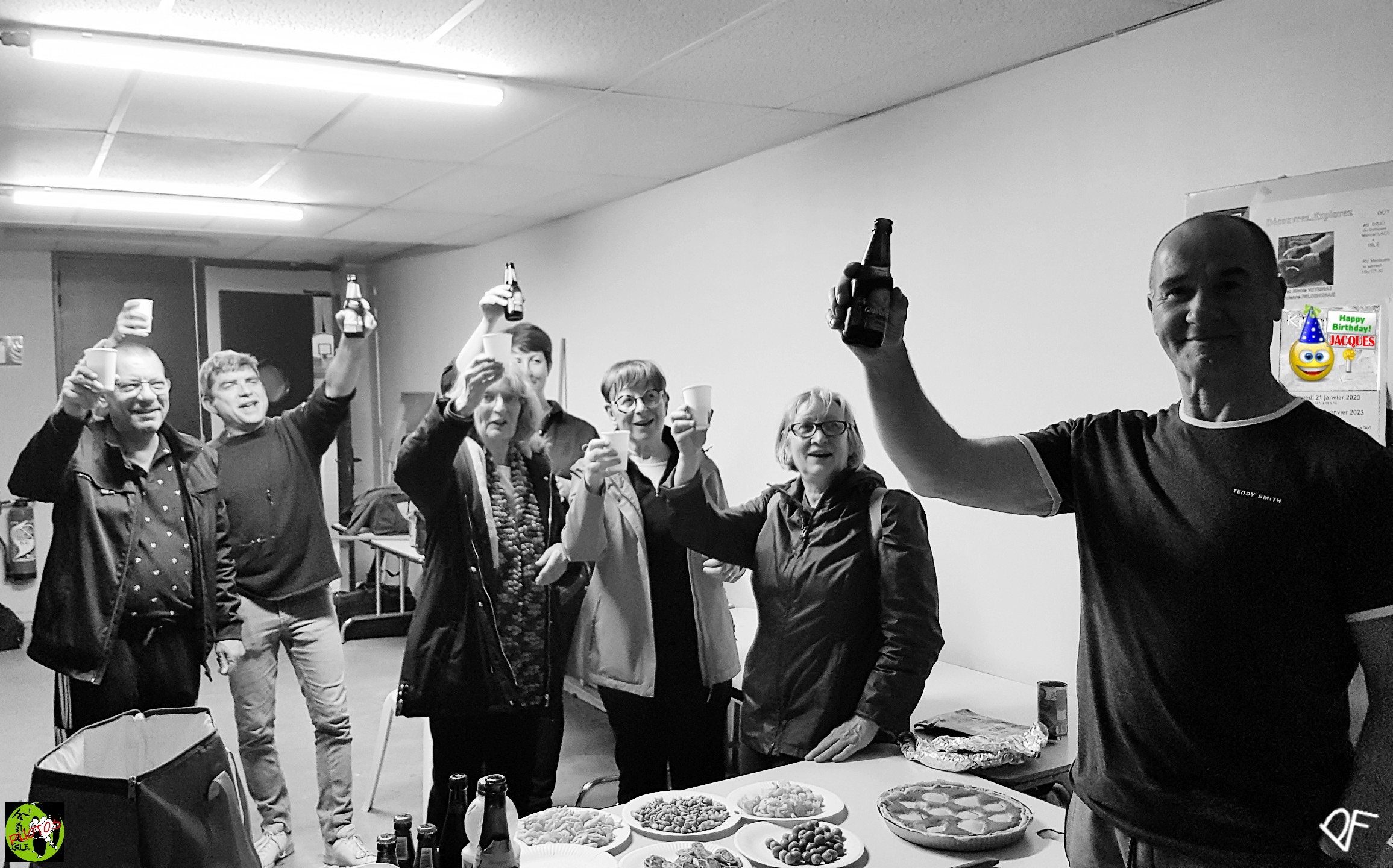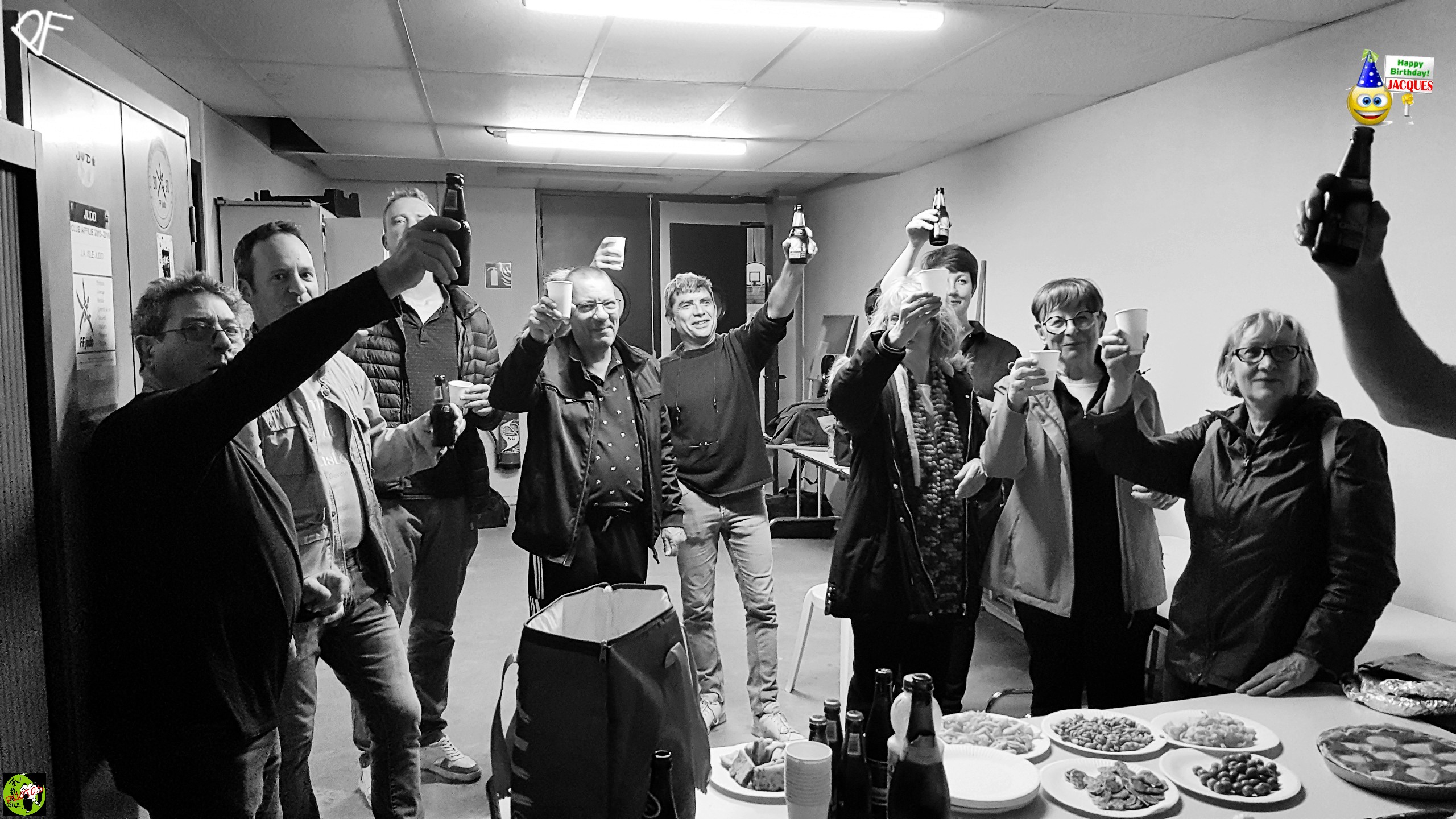 Juste auparavant, nous rappelions une autre de belle tradition du Club qui consiste en une répartition tempérée mais vivace des arrosages qui valident à merveille ces attributions de grades, lesquels viennent ponctuer les progrès de chacune et chacun dans notre belle discipline. Ce fut à la fin du cours de ce MARDI 2 AVRIL 2024 !!! Comme nous étions 15 sur le tatami; nous en avons profité pour aussi garder quelques traces photographiques de ce cours avant que d'aller fêter ce fameux After Kyu... ma non troppo Merci à Pascal Fouilloud pour les photos du cours et les photos de l'After Kyu, images préparées par gg. |