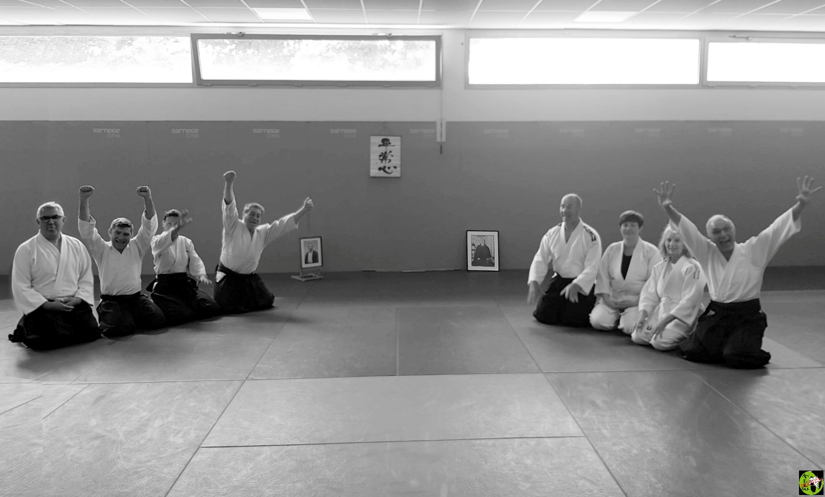 | 240706 Dernier cours au Dojo Marcel Lalu RdC. | Petite chronique de notre mémoire sur Tatami : ce samedi matin 6 juillet 2024 nous avons foulé pour la dernière fois ce Dojo Marcel Lalu qui nous aura vu pendant une trentaine d'années user nos Keikigi et Hakama toujours avec plaisir et grande en vie de progresser dans notre Aïkido Il nous a paru aussi nécessaire qu'amusant de garder trace de ce dernier cours en ces lieux. Avant que dès la rentrée nous n'allions découvrir d'autres lieux, d'autres repaires au Dojo d'en haut ainsi qu'au Dojo nouveau d'en bas. Autant d'endroits qui pour l'instant nous sont encore parfaitement inconnus. Nous ne manquerons pas, dès que nous aurons plus d'éléments logistiques concrets de faire un point précis sur la page d'accueil, mais en attendant, bel été à toutes et tous. |