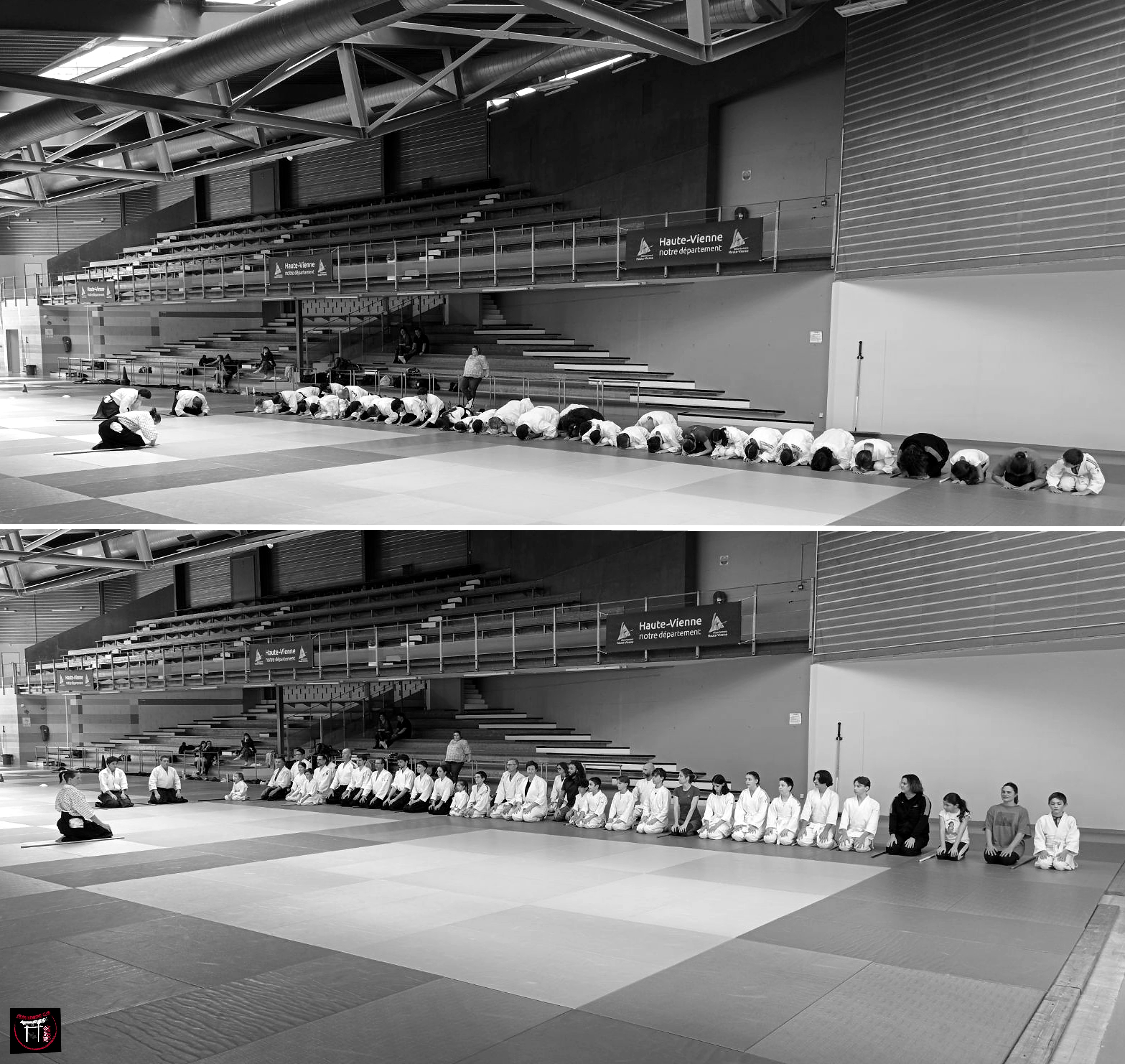 Et cela nous prit ainsi : samedi matin 31 août et mardi soir 3 septembre pour le plaisir quelques photos et vidéos dans le nouveau Dojo. Eliette à la vidéo samedi et Pascal et Aurélie pour les 2 photos couleur et N&B du mardi. gg aux montages. |
