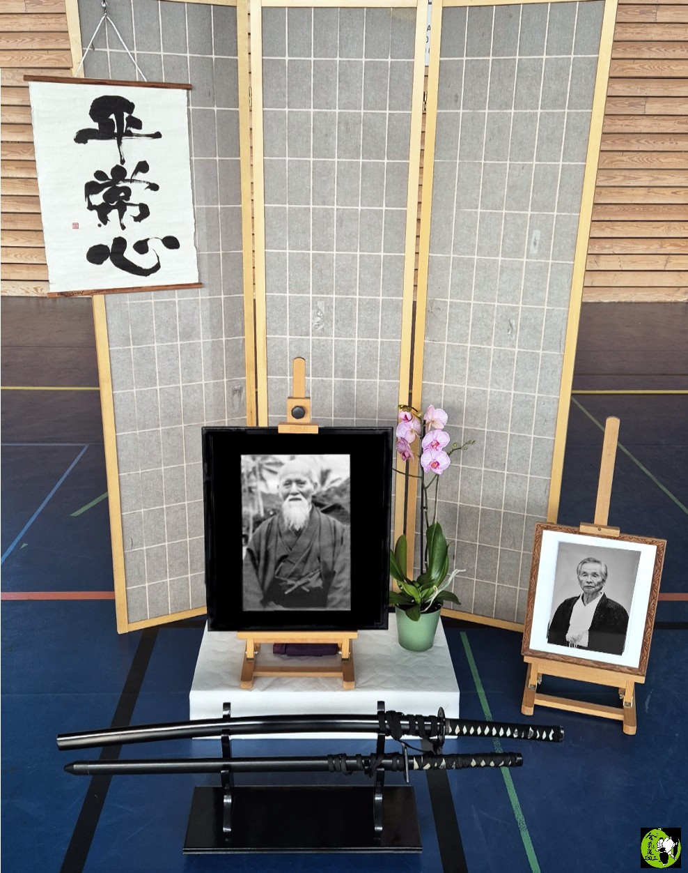 | 240827 Mardi jour de reprise au nouveau Dojo R&A Amet | Petite chronique de notre périple "Dojos musicaux" en ce mardi 27 août où nous avons pratiqué pour la première fois dans ce nouveau et très beau Dojo qu'est l'espace René & Alain Amet. Un lieu dédié à la pratique des Arts Martiaux de grande qualité, tant en volume qu'en harmonie. 200 m2 de Tatami d'un bleu reposant où nous avons posé nos petits petons pour la première fois avec grande douceur puis au fil du temps un peu plus vaillamment en gardant la même sensation de bien être à évoluer ainsi dans ce nouvel espace. Et comme fin juin, nous avions pris plaisir à inscrire en nos souvenirs le dernier cours dans l'ancien Dojo Lalu, de la même façon il nous a paru aussi opportun que nécessaire de bien marquer ces premiers pas d'une petite photo pour cette belle séance de reprise. Pascal et Ritch au déclencheur et gg au montage pour deux photos : une couleur et une en N&B, parce qu'on aime ça. Vendredi qui suit, deuxième découverte dans notre périple "Dojos musicaux" au nouveau Dojo Lalu d'en Haut.. |