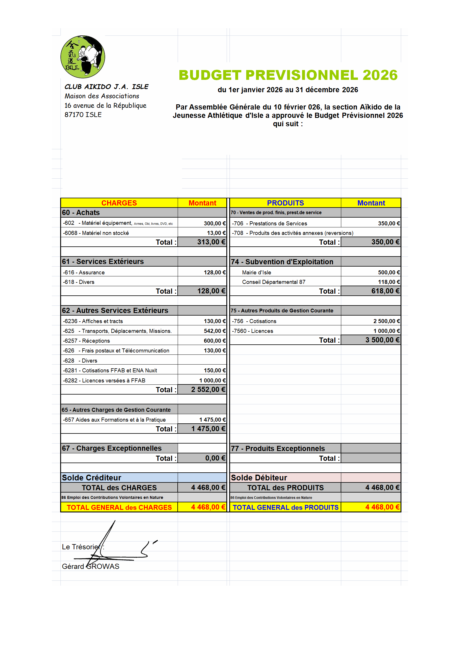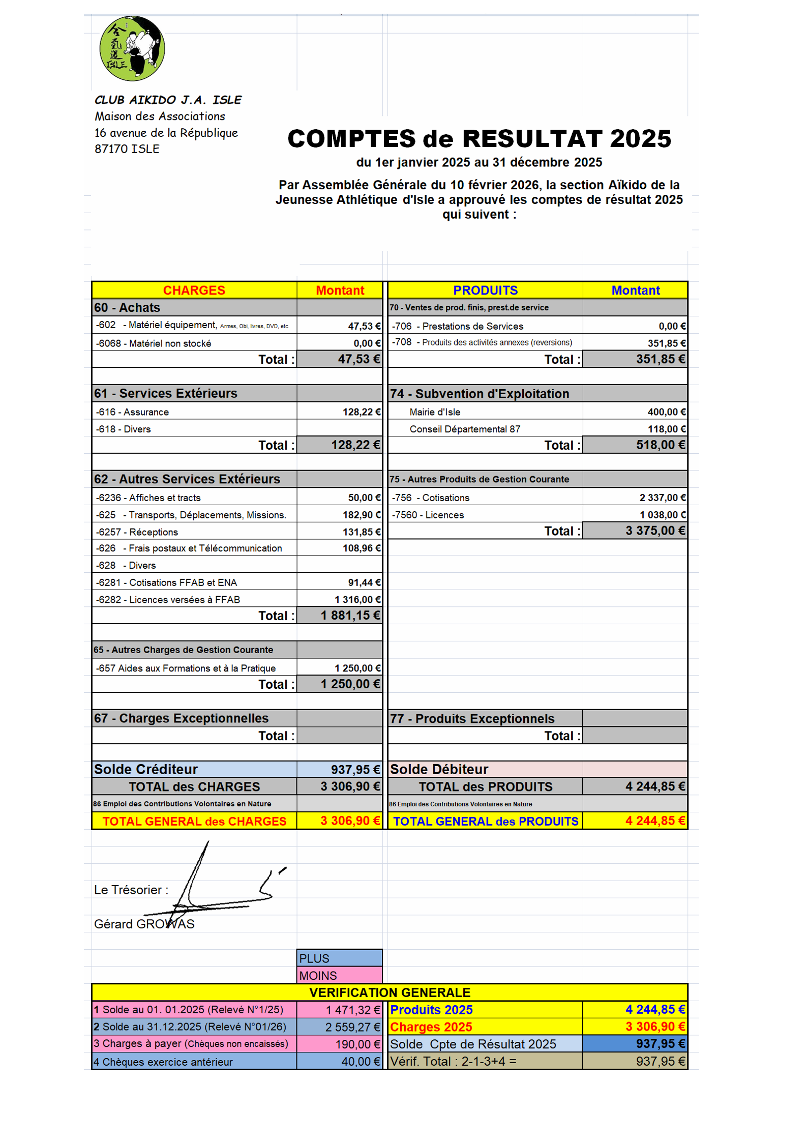 Ce mardi soir 10 février 2026, au Dojo R&A Amet, le Club Aïkido JA Isle tint sont Assemblée Générale Ordinaire... mais pas que : en effet, après un cours court incluant travail au Jo, il fut temps de quelques annonces : -1er Kyu attribué à Jacques LECERF, qui est présent à tous les cours, tous les stages, toutes les démos, toutes les crêpes et plus encore -3ème Kyu avec remise de Hakama attribué à Christophe RUBY qui est présent dès qu'il le peut tant aux cours qu'aux stages, son travail de chaque jour bien avant les aurores, ne facilitant pas l'envie qu'i manifeste de vraiment progresser au mieux dans sa pratique de l'Aïkido. Petite vidéo par Pascal Fouilloud, montée par gg A la suite de quoi, vers 21h15 se tint notre AG Ordinaire en présence de plus des deux tiers des licenciés, soit 20 présents dont deux avec trois pouvoirs !!! Une excellente AG qui vit l'arrêté des comptes, le prévisionnel et le rapport d'activité approuvés à l'unanimité. Tous comme les décisions de confier les demandes de subventions auprès de la Mairie d'Isle et du Conseil Départemental via JA Isle Omnisports respectivement à Gérard Growas et Jean-Paul Gasquet, lesquels se virent, accompagnés de Pascal Fouilloud, désignés pour effectuer les démarches d'ouverture d'un compte soit au CRCA, soit au Crédit Mutuel. S'en suivit alors un débat constructif qui s'établit aussi spontanément que sereinement dont l'enjeu essentiel fut de conforter notre gestion pérenne des comptes sans gruger nos activités face aux diverses augmentations avec lesquels nous seront confrontés lors de la prochaine saison : à l'unanimité il fut décidé que la cotisation annuelle adultes passera en septembre 2026 de 92 €, en vigueur depuis plus de 10 ans, à 100 €. La cotisation pour les mineurs restera, elle, à 30 €. Le Club fêtera ses 45 ans début 2027 en même temps que gg ses 30 ans d'enseignant bénévole, avec en point d'orgue l'organisation d'un grand stage et autres soirées gustativo-festives... Et pour ne pas perdre un seul détail de ces informations, il est possible ici de télécharger le PV de l'AG, lequel vous permettra également de télécharger les Comptes de Résultat, Prévisionnel et Rapport d'activité. L'after AG fut crêpitant sous la dent tout en douceur et coulis saveurs, boissons suaves et légères en sus. Grand merci à Nicole, Christophe et Jacques pour ces instants de vrais et goûteux partages. Photos de l'AG et de son after par Pascal Fouilloud, préparées par gg. |